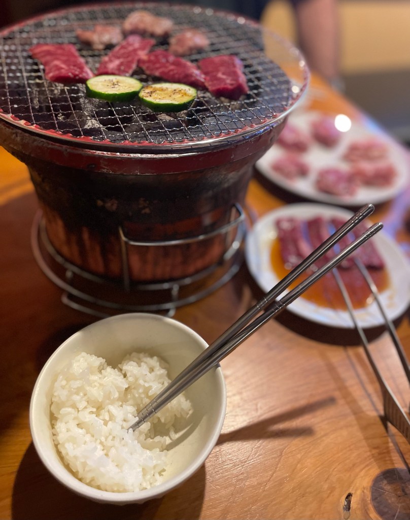 We continued on our way and passed other iconic shops like Harry Winston, Louis Vitton, Disney, and an IKEA. Eventually, my hunger cues started to really speak up again and we needed to find something soon. I also didn’t want to keep walking much more, after reaching about 5 miles for the day. We found a Korean BBQ place on our way back to the hotel…except it was on the 5th floor. All these places have restaurants stacked on top of each other. But, I was now starving…so up the stairs we went. We ordered a variety of meats, a ton of rice, some veggies, and water. To say I was hangry would be an understatement.