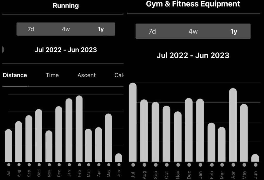 3. Heart rate training is tough with rising temps. I’ve had a difficult time adapting to rising temps this year, more than other years. I’m still optimizing my iron stores and working on lung improvements as well. Oxygen-carrying capacity deficits with high humid mornings has meant some days have been hard to breathe and stick to target heart rate ranges. I’ve been beefing up my iron intake and working on breathing tutorials, so finally adapting to summer weather.