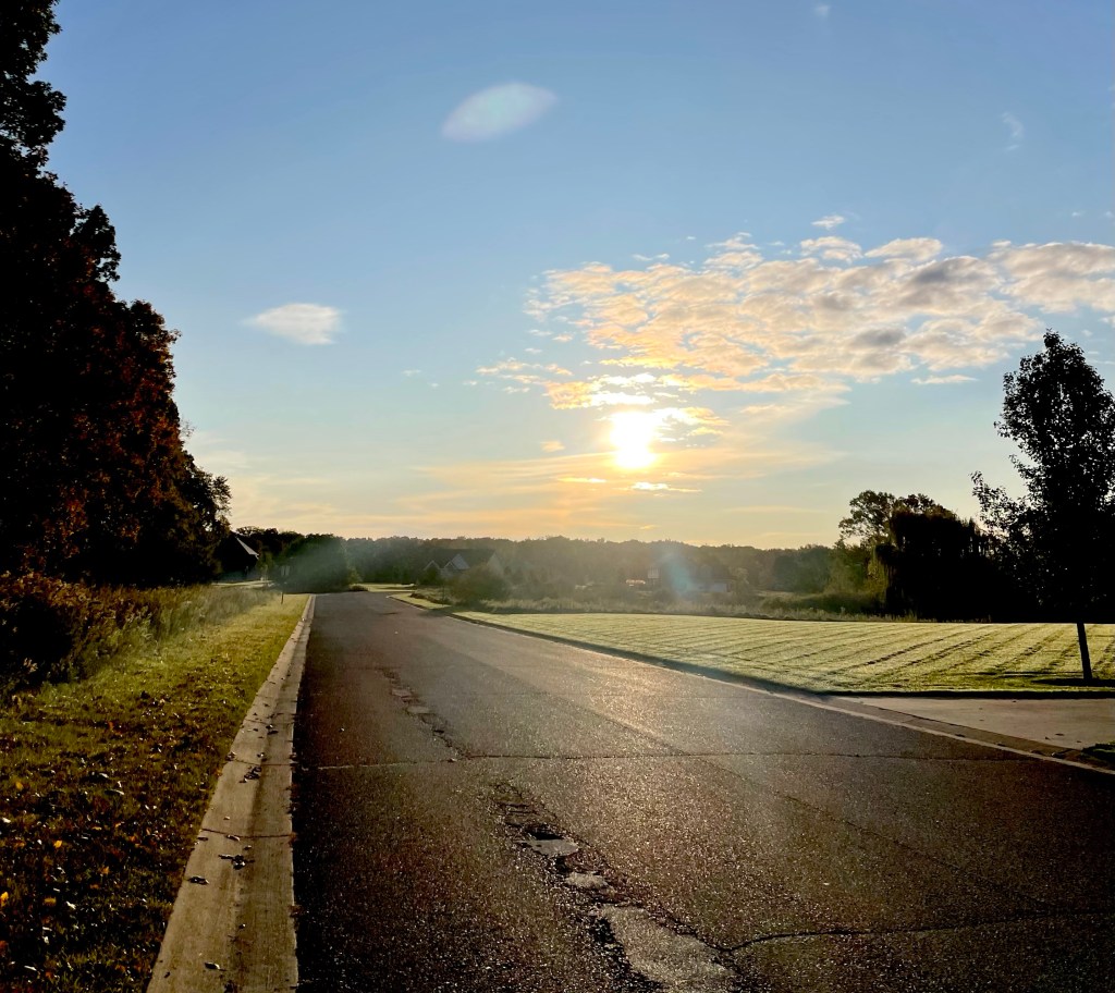 I love the concrete life, but my bones need a little more variety. One of my risk-reduction strategies is to alter my running terrain at least once per week. I had been visualizing my run on the track for a few days. And it jolted my expectations towards the sky.