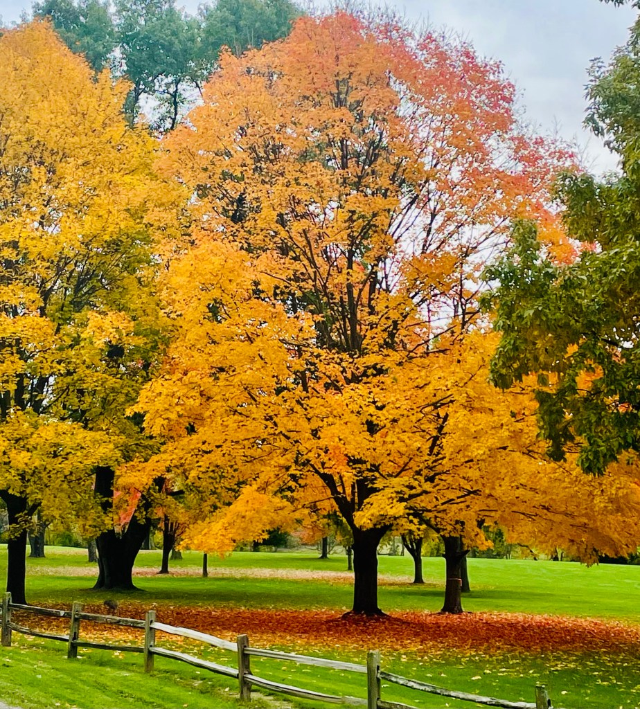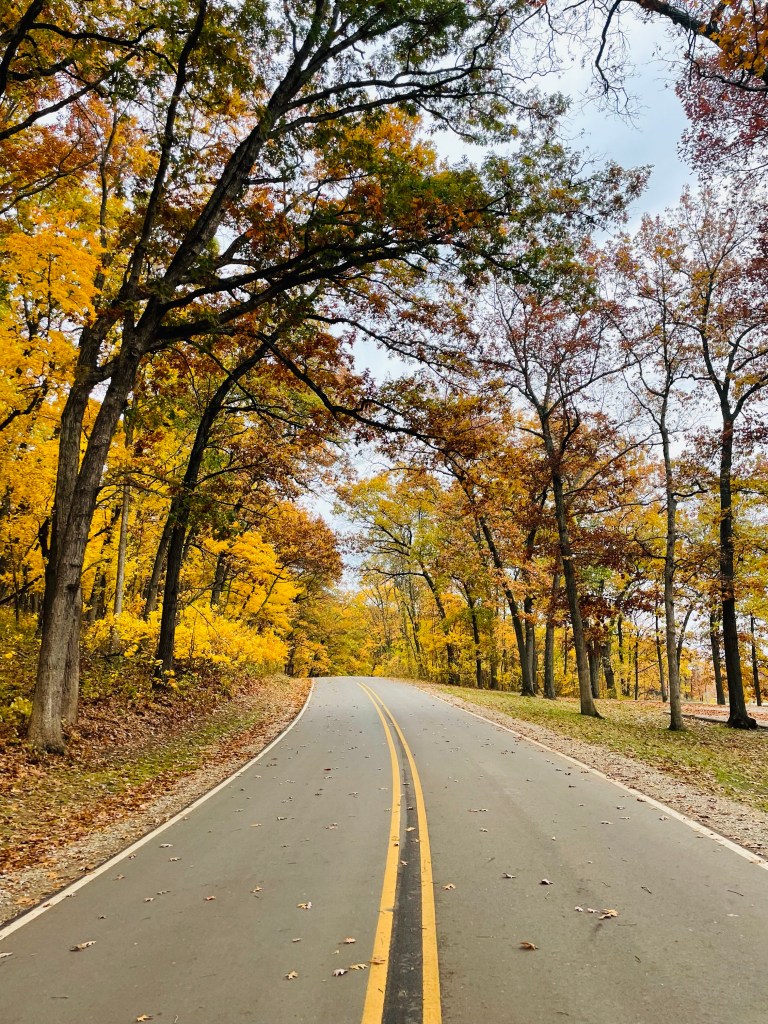 I hit the park to do my run /walk progression workout, which was 5min WU, 6min run/1 min walk x 6, 5min CD. Today was about 57 F with a slight breeze out of the south, 70% humidity, which was a little warm for me. I like it in the 30s-40s, but it was not a bad day in October. The first 3 intervals went good. I enjoyed looking at the color changing on the trees. The views today reminded me so much of one of my virtual marathons.