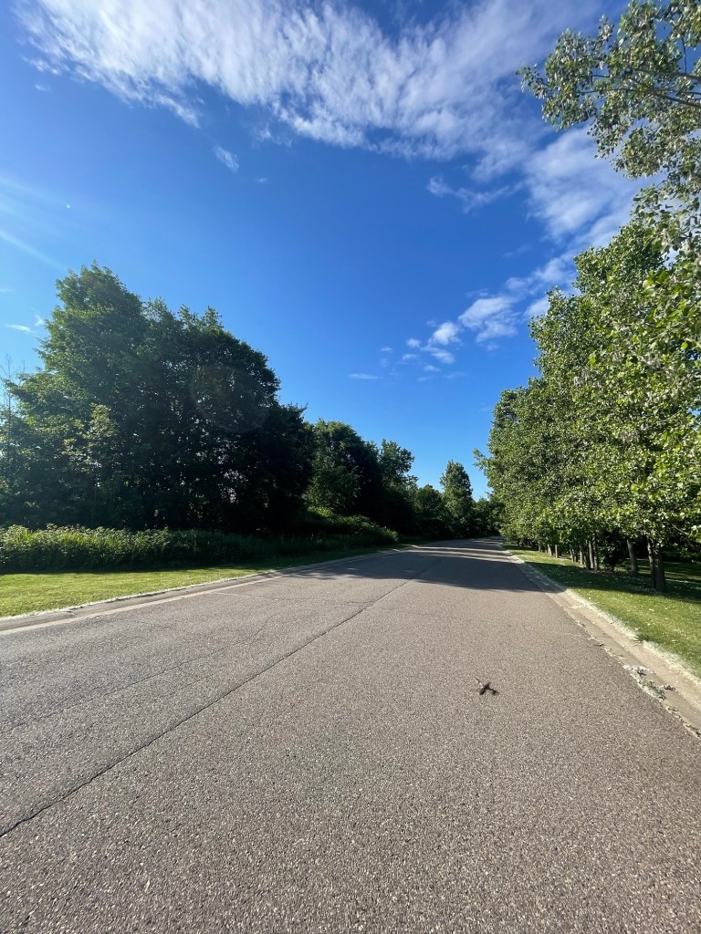 The first two miles cruised by like nothing and then I chucked my hydration vest to get into the speed segments. In the process of chucking my vest, I lost my AirPods which were in the pocket. (I found them 24hr later on the side of the road, intact!) The speed segments were hot-n-humid but the legs cruised along nicely. Nothing could stop me today! When it got spicy, I envisioned myself closing out race day and not giving up. My mantra today was “proud and loud” and that kept me digging in the speedwork without slacking off. I welcomed each of my walk breaks willingly to let my HR drop down and then it was time to go again. The speed segments felt solid: smooth skeleton at last and GCT + cadence reflected that. Once I finished up the speed segments, I collected my hydration vest to take a big gulp, and then I went on my way to finish up 2 more miles. By the time I finished completely, it was even hotter and I was ready to collect my cooldown tagalong fur pup for a walk.