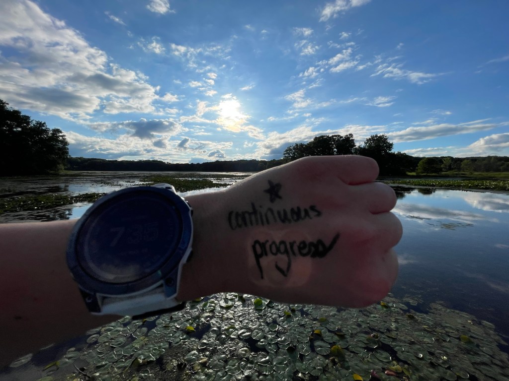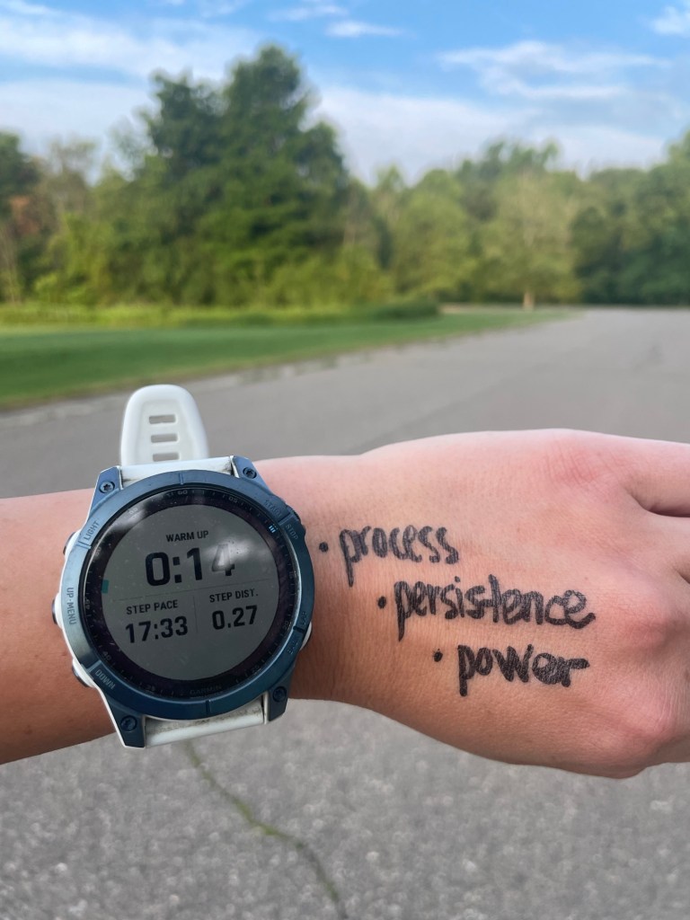 Today’s run also caught me in a downpour, which felt refreshing. I just kept going because on race day, there is no turning around. I was pretty wet from sweat anyways, so what was a little more water to the picture.