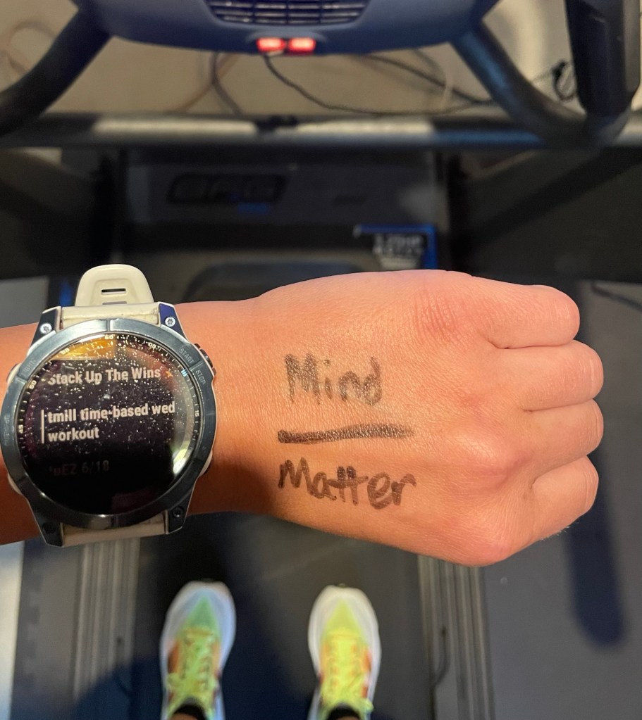 I programmed my workout as a time-based workout, so I wouldn’t have to worry about pace on my watch vs the treadmill and get frustrated. I didn’t want to think too hard either, so I relied on the beeps to tell me when to change speeds. The workout was: WU walk, 24:30min @ RPE 3-4, recover, 4×8:30min @ RPE 5 w recovery, 24:30min @ RPE 3-4, CD walk. It did it all on the treadmill! If that doesn’t say perseverance, then what else does?