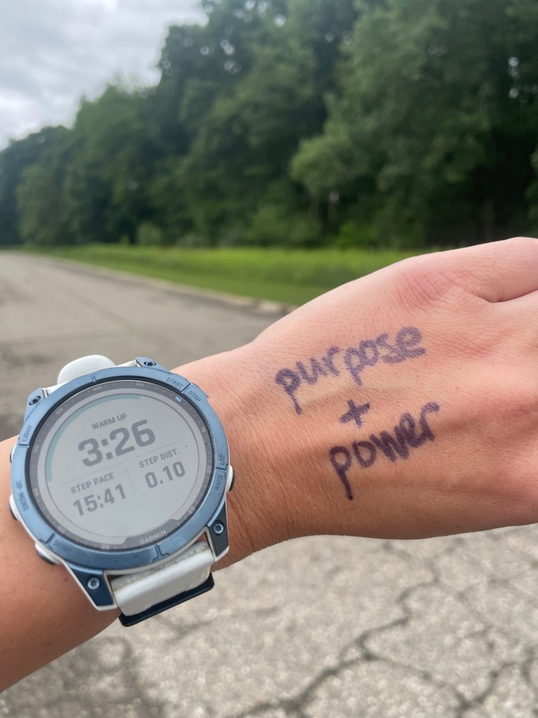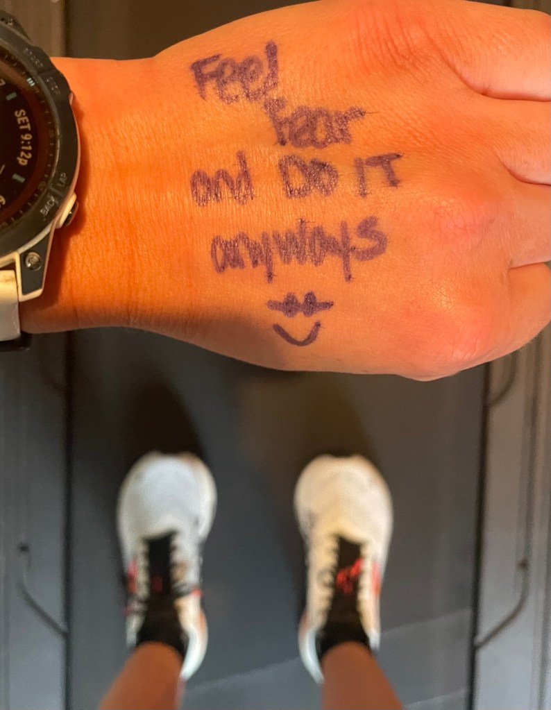 During my last mile at RPE 6, I had written today’s mantra on my hand and it came in handy: “Feel fear and do it anyways.” It was the boost I needed to get through the last mile strongly. I kept telling myself that I was capable of it and it worked to nail it!